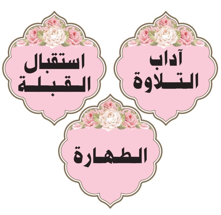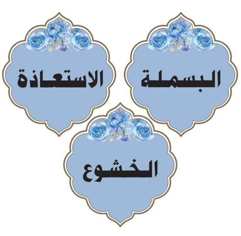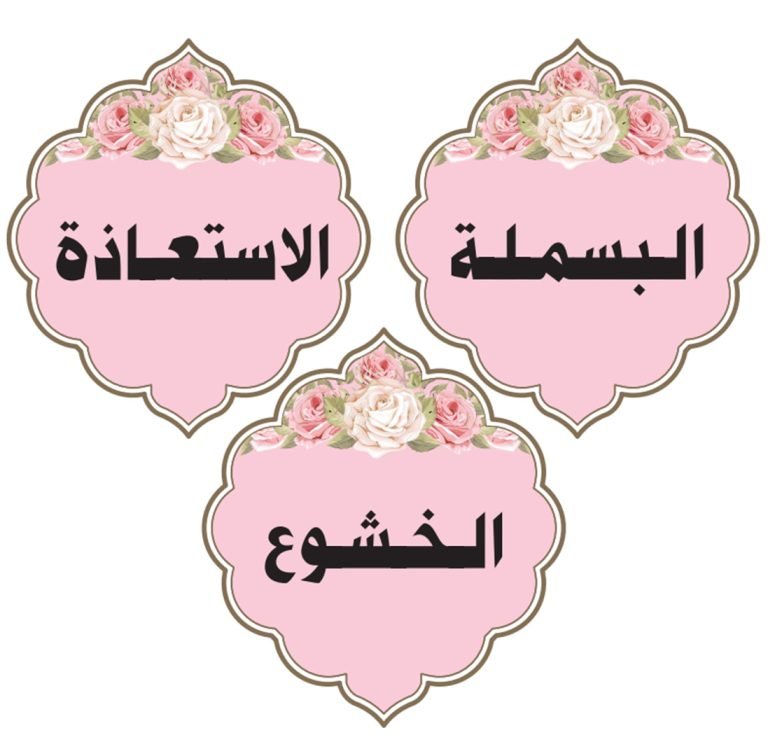 آداب التلاوة تتكون من 6 بطاقات للبنات بالعناوين التالية استقبال القبلة آداب التلاوة الطهارة الاستعاذة البسملة الخشوع جمعت بمغلف أنيق